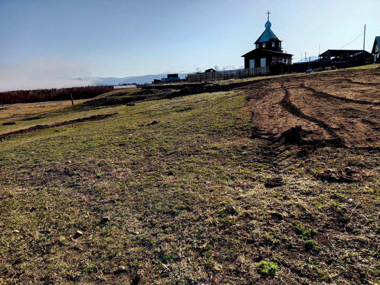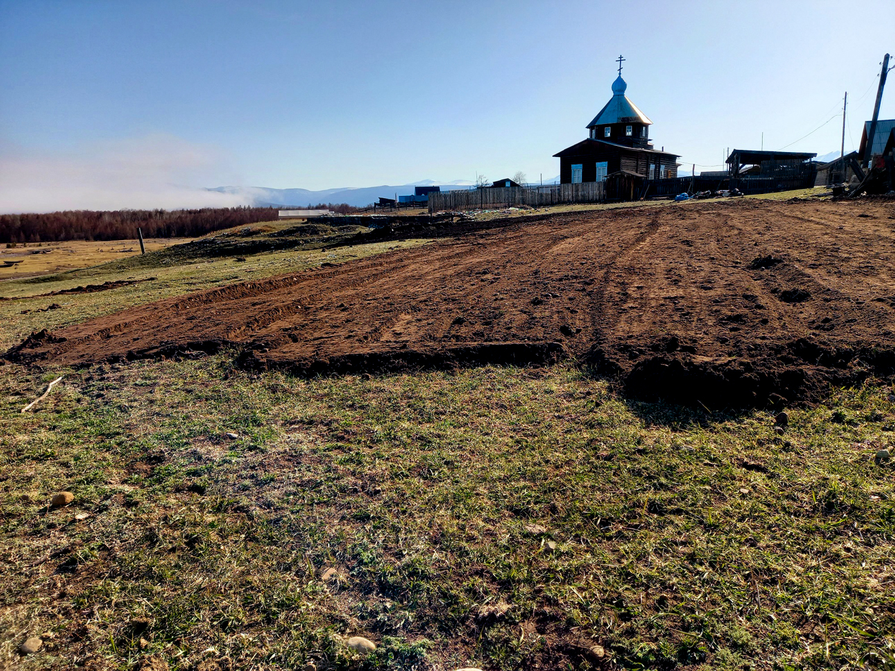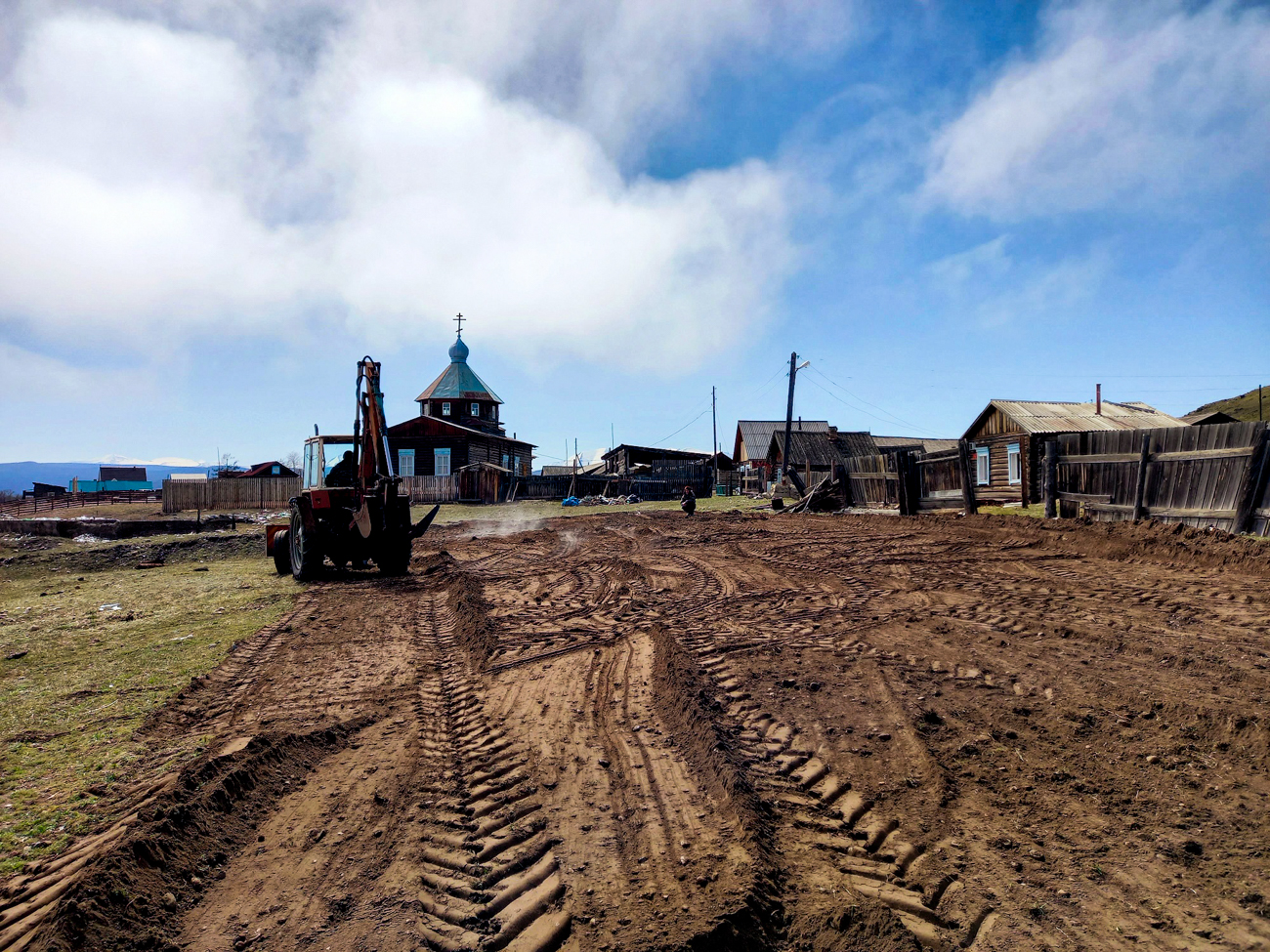 Бережное преображение. Выравниваем площадку под будущие постройки. Используется легкая колесная техника. Площадка стала ровной, открытой солнцу и байкальским ветрам.